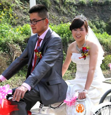 4月7日上午,整个宁强县城的人们看到了这样一个难忘的场景,新郎官李兴龙同他美丽的新娘邱二玲共同骑着一辆自行车,走遍了宁强县城的主要街道,而一直陪伴在他们身边的是30辆装饰一新的自行车队,成为人们眼中一道亮丽的风景线。