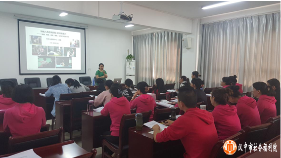本次培训采取了理论和实践操作相结合的方法。理论知识部分,胡老师重点对福利机构内常见障碍类型儿童的康教学习、全人疗育的相关知识概念及专业理念进行了逐一教授,她尤其强调了脑瘫儿童的摆位训练应贯穿于儿童的整个日常生活中,需要我们所有工作人员的积极参与,共同为儿童创造最佳的康复环境。