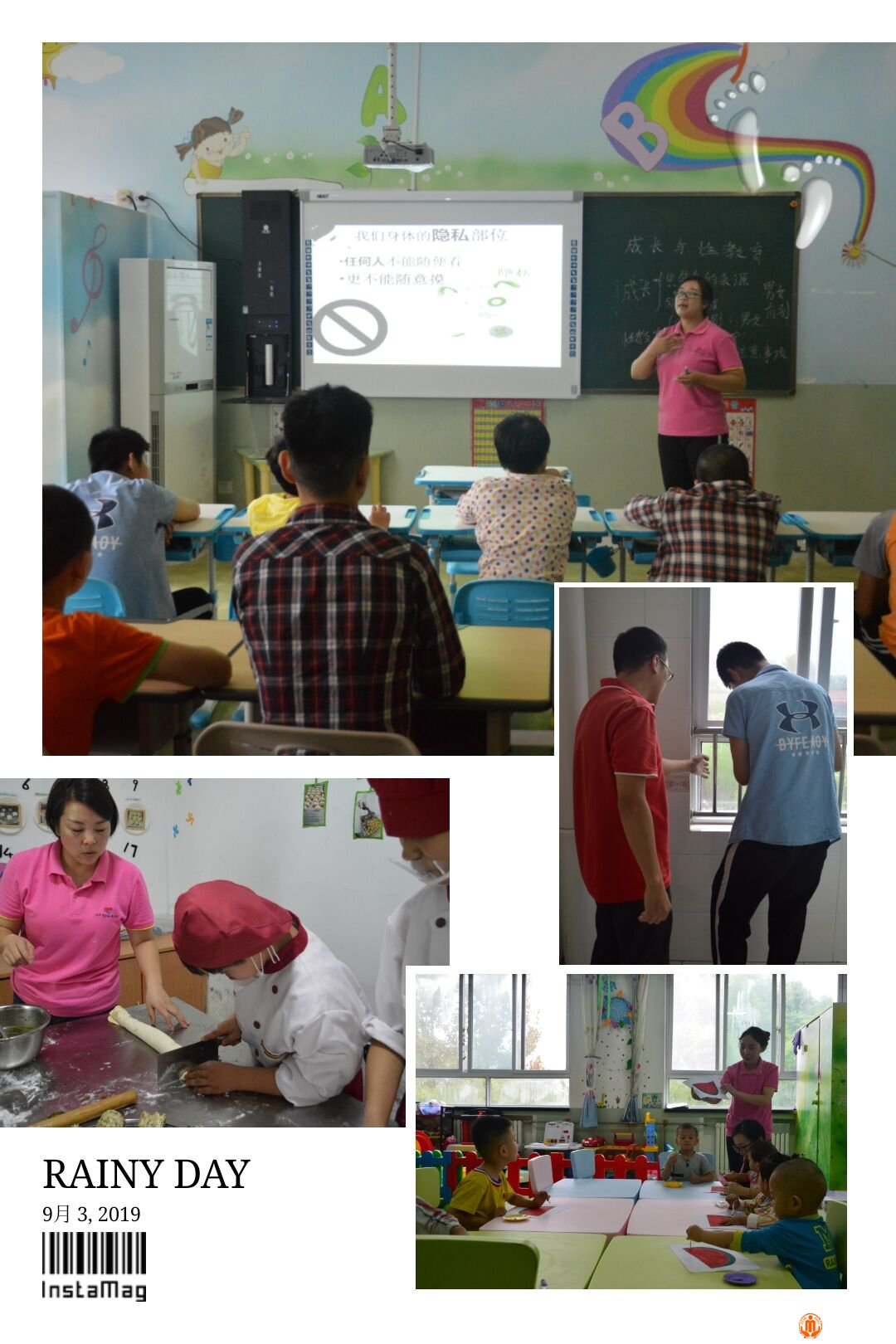 李佳老师引导葡萄班的小萌宝们自己动手用棉签作画;申静老师带领儿童走进了生动活泼的“动物王国”;韩奋英老师为孩子们带来了欢乐明快的律动操《蜗牛与黄鹂鸟》;技能培训老师刘荣荣则带领参与技能培训的学生进行了手工制作花卷实践课;李静老师《美丽的大公鸡》语言课,运用多种教学器具,引导学生懂得了心灵美胜于外表美的真谛;叶珊老师的《成长与性教育》课则图文并茂为处于青春期儿童带来了一堂必要的青春期性教育课。