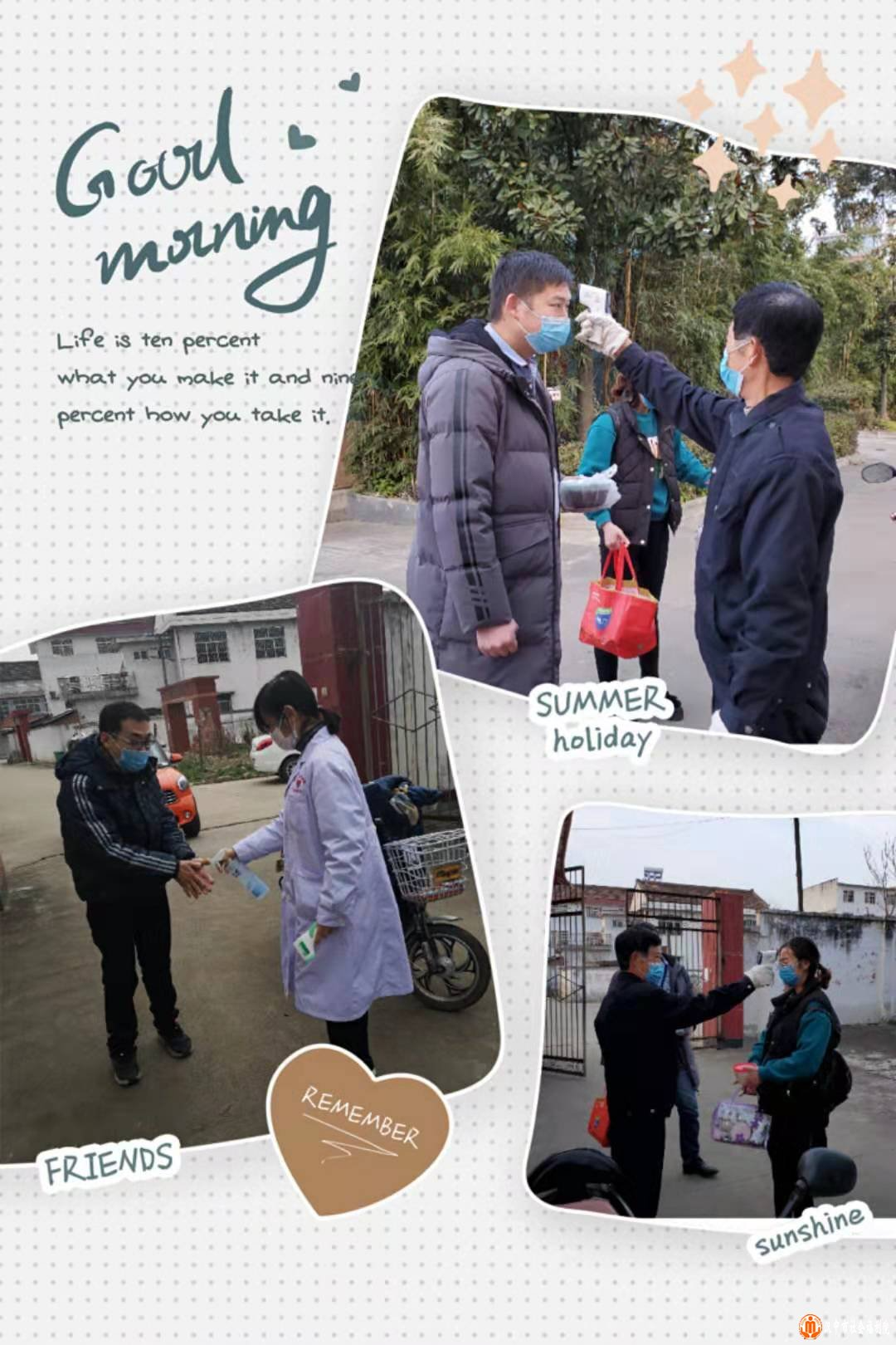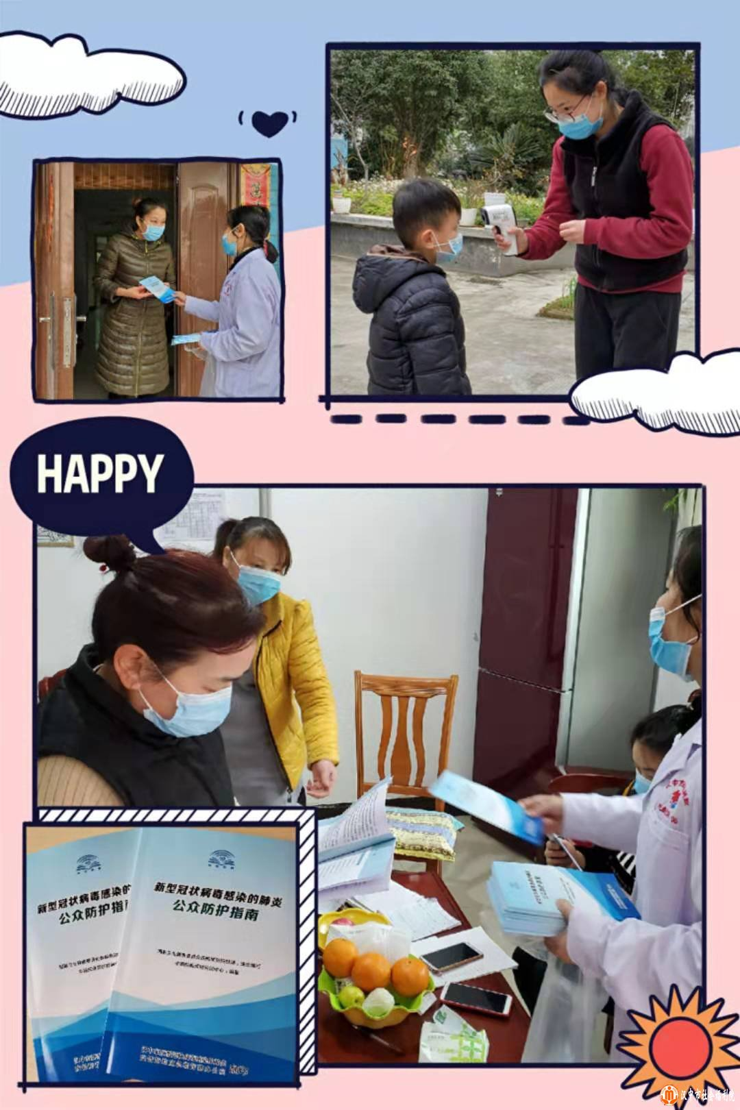 医生阿姨开始给具备一定行动能力的孩子们更换并佩戴新口罩,继续耐心教导宝贝们如何正确摘、戴口罩。少年不识愁滋味!阿姨统一佩戴口罩尽然成了孩子们这段“宅家”时光中的乐趣之一。话说间,每天下午监测体温又开始了。边测体温边发放防“疫”宣传资料,继续强调疫情防控重要性,给“家庭妈妈”们叮嘱家庭防保措施。