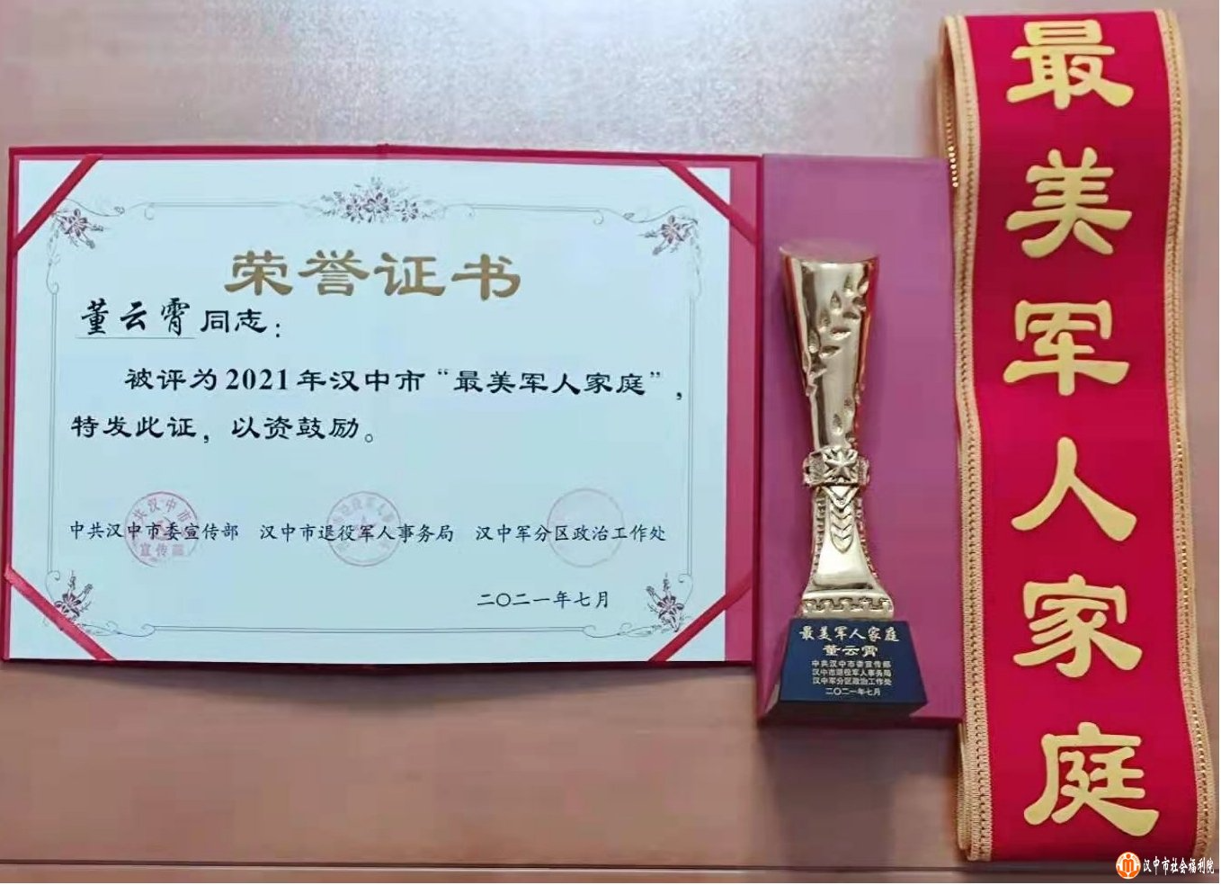 7月23日,由汉中市委双拥工作领导小组在全市范围内开展的“最美军人家庭”评选活动揭晓,我院党支部推荐的孤残儿童护理员董云霄家庭获得2021年汉中市“最美军人家庭”荣誉称号。