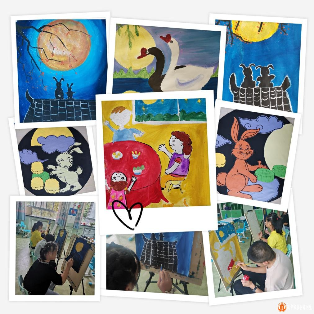 丹青写中秋,稚手绘团圆。美术课上,孩子们把眼里的中秋绘成一幅幅精彩画作,展示出他们充满童趣的世界和幸福的生活!