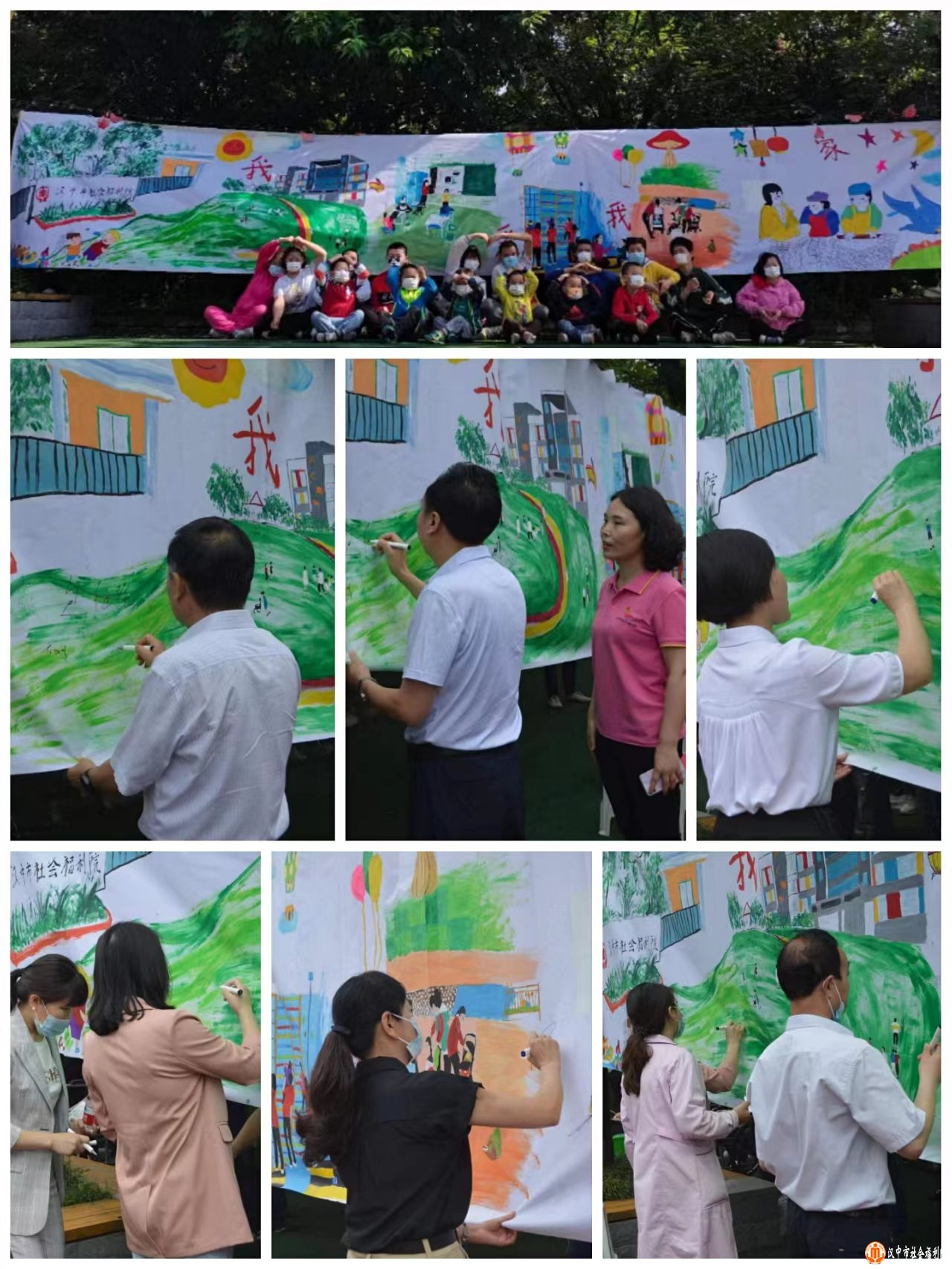 活动伊始,全场人员在十米绘画长卷《我爱我家》上签到留念,一起欣赏了特教班师生近期创作的绘画作品和手工艺术作品。一件件精美的剪纸作品、刻纸画、掐丝画、刺绣团扇、手工包袋、衍纸画蕴含着独特的创意与构思,尤其是十米绘画长卷《我爱我家》,孩子们以稚嫩的笔触将一帧帧日常生活、学习、康复、嬉戏等情景生动形象的渲染于纸上,堪称艺术“佳作”!儿童绘画和手工作品展是活动现场一道亮丽风景线,充分展现了院内儿童爱党爱祖国、热爱福利院的良好精神风貌。