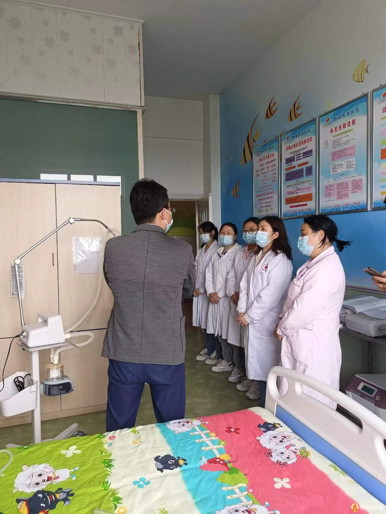4月12日下午,我院附属民康医院医护人员在儿童福利所三楼抢救室参加了医疗设备技能培训会。培训会邀请国药控股有限公司医疗设备李世强和杜晓哲2名工程师进行专题讲解。 培训会主要针对医疗抢救常用的呼吸机、心电图机等2类医疗设备操作进行了重点培训。李世强工程师重点讲解了呼吸机使用步骤及通气模式,包括呼吸机的组成、操作步骤、使用禁忌症及压力控制通气、压力支持通气、持续气道正压通气等常见通气模式等。杜晓哲工程师从心电图机器械原理、附件分类、影响因素、注意事项、常见问题、维护保养等方面做了详细说明。培训讲解过程中,2名工程师还现场向医护人员演示了2种医疗设备的具体操作方法及技巧,并针对参会人员提出的相关问题进行了互动解答。 本次培训会的成功举办,有效提高了医护人员对常用抢救医疗设备的使用技能,为全院服务对象提供更加优质的医疗服务打下了坚实的基础。(附属民康医院 秦沙沙)