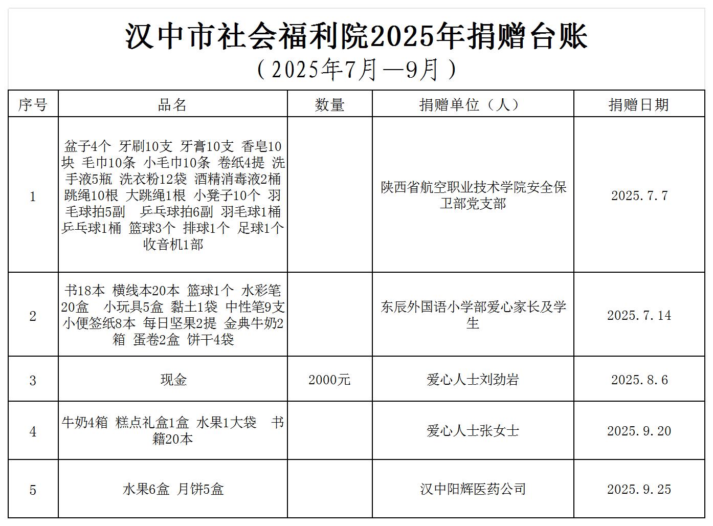 2025年7月—9月接收社会爱心捐赠,清单如下:
